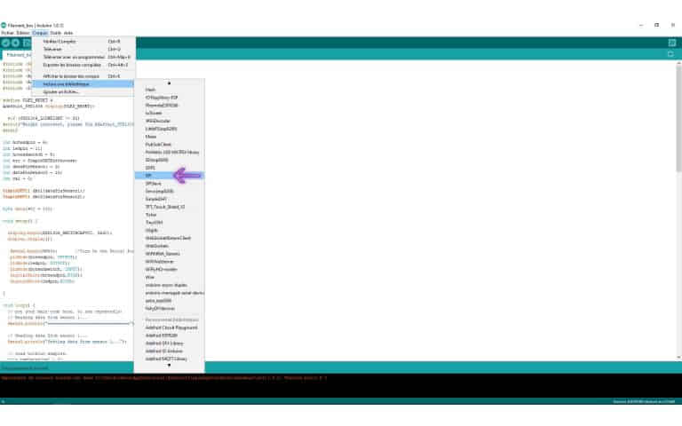 Cliquer sur « Croquis –> Inclure une bibliothèque »